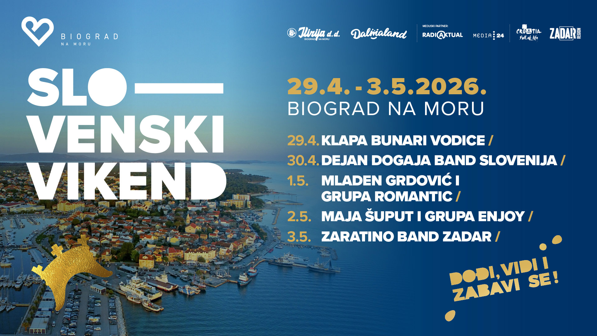 Slovenski vikend je manifestacija za one koji ne žele samo sjediti, nego se kretati, družiti i uživati uz more. Uz podršku gradova prijatelja iz Slovenije – Slovenske Konjice, Moravske Toplice, Radlje ob Dravi i Žalec – stvaramo događaj koji ima svrhu: jačanje suradnje i iskustvo koje spaja sport, glazbu i gastronomiju.